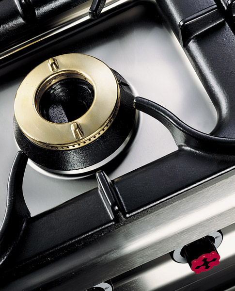 Top burners in cast iron with pressed burner cap in brass with double ring